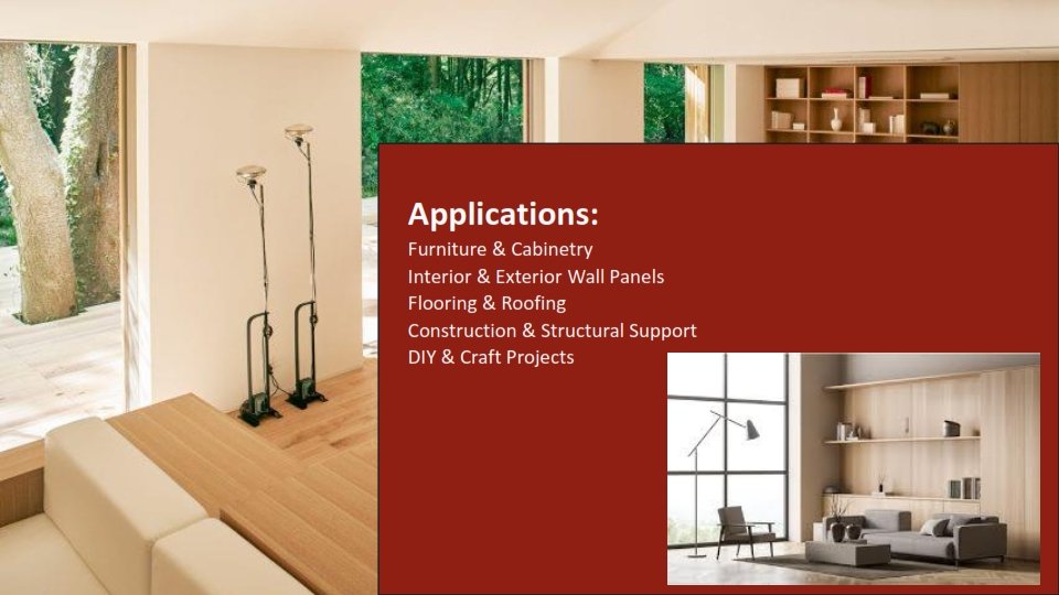 Moisture & Weather Resistance – Available in various grades, including waterproof (marine) plywood for outdoor use.